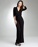 Put chic back into your look with this soft bebe jumpsuit, featuring 3/4 sleeves, faux wrap design, self-tie at waist and wide leg cut. Amp it up with a metallic heel, bangles and statement earrings for a luxe evening look.