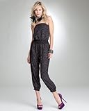 Off-duty just became street-style fab. With cool print and pleated neckline, this bebe jumpsuit is a style we can totally jump for joy in. Features smock detail at waist and back. Try a blazer over it for a twist. Center back to waist: 9". Rise: 9". Inseam: 25". Leg opening: 11".